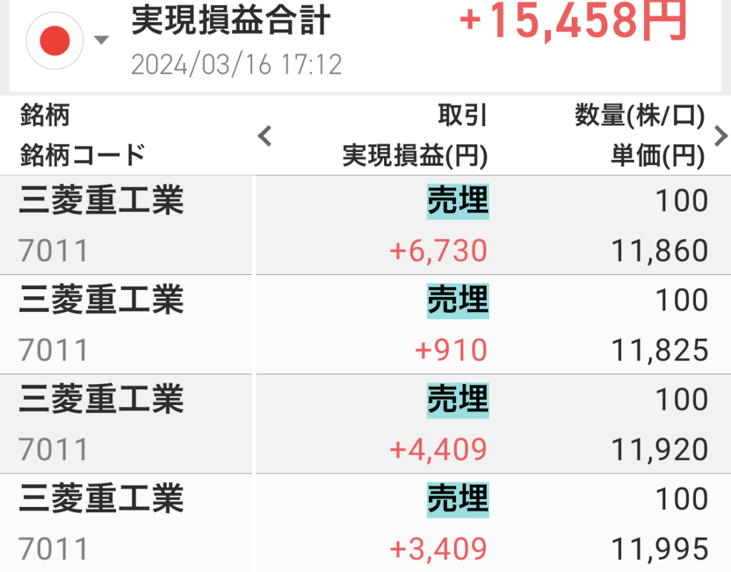 朝一売りと買いを間違えたおかげで1万円近く儲かる。ほんとに才能ないと思ったので売りはいよいよ辞める。