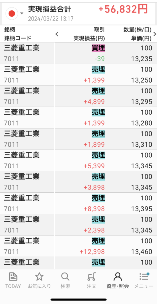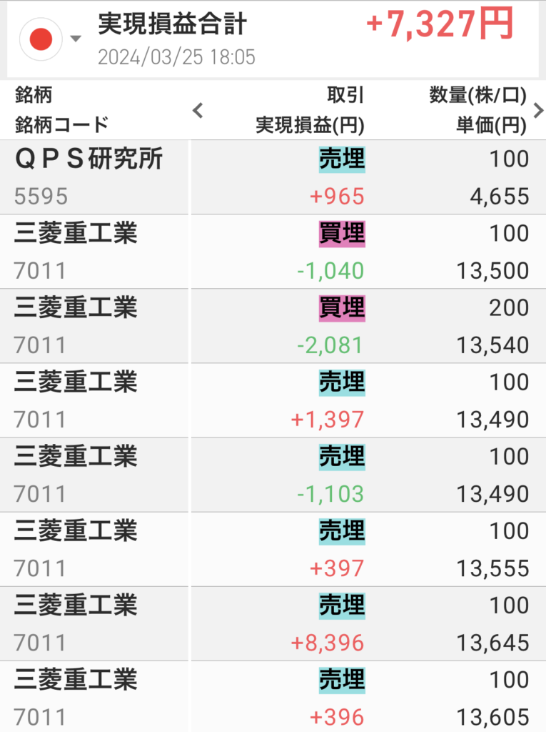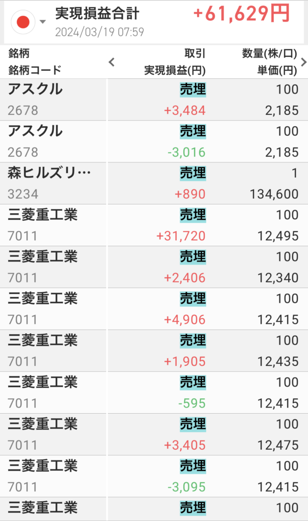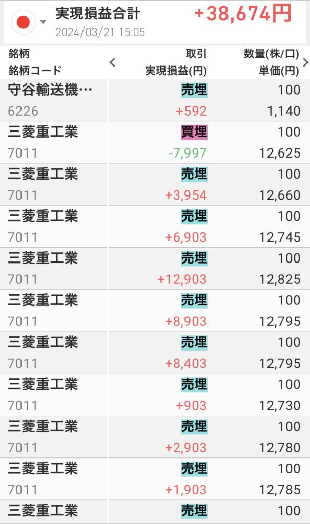 少額だけど守屋輸送を利確できたのが満足。