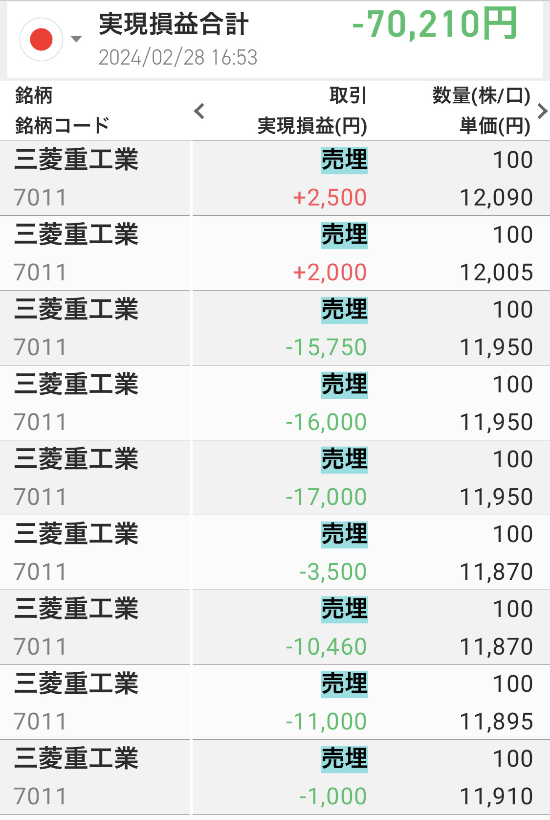 始めにプラス7万円越えの含み益を見ていたため、なかなか売れなくなる罠。